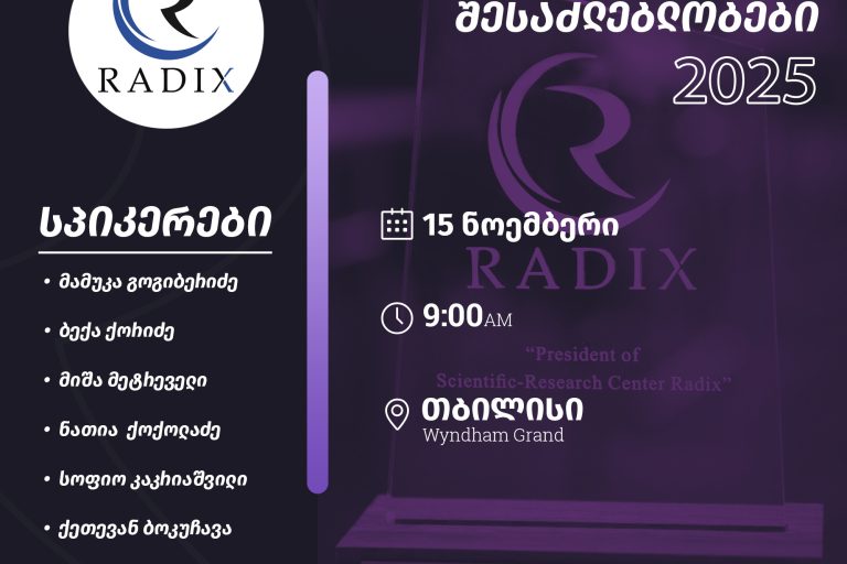 2025 წლის 15 ნოემბერს სამეცნიერო-კვლევითი ცენტრი „რადიქსი“ გამართავს კონფერენციას „თანამედროვე სტომატოლოგიის შესაძლებლობები“, რომელიც ჩატარდება თბილისში,…