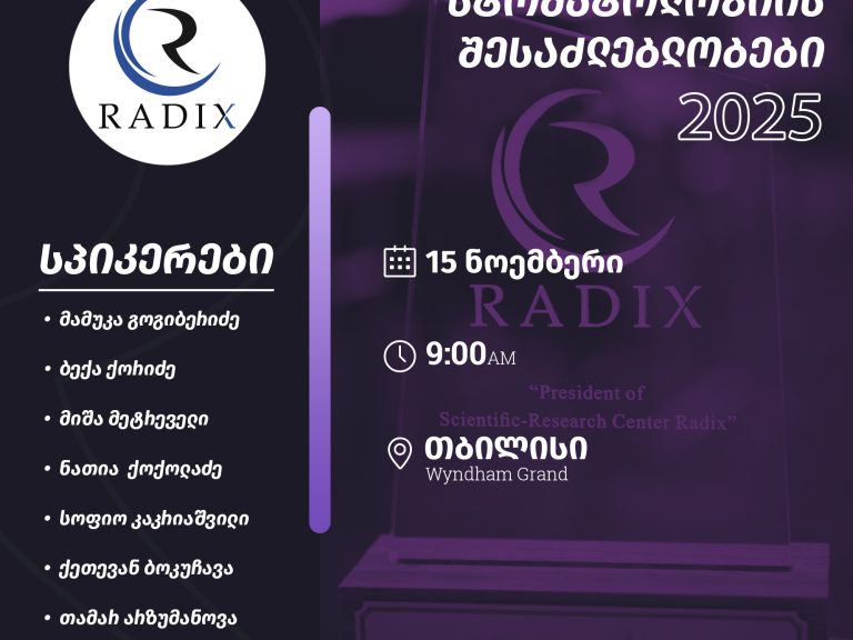 2025 წლის 15 ნოემბერს სამეცნიერო-კვლევითი ცენტრი „რადიქსი“ გამართავს კონფერენციას „თანამედროვე სტომატოლოგიის შესაძლებლობები“, რომელიც ჩატარდება თბილისში,…