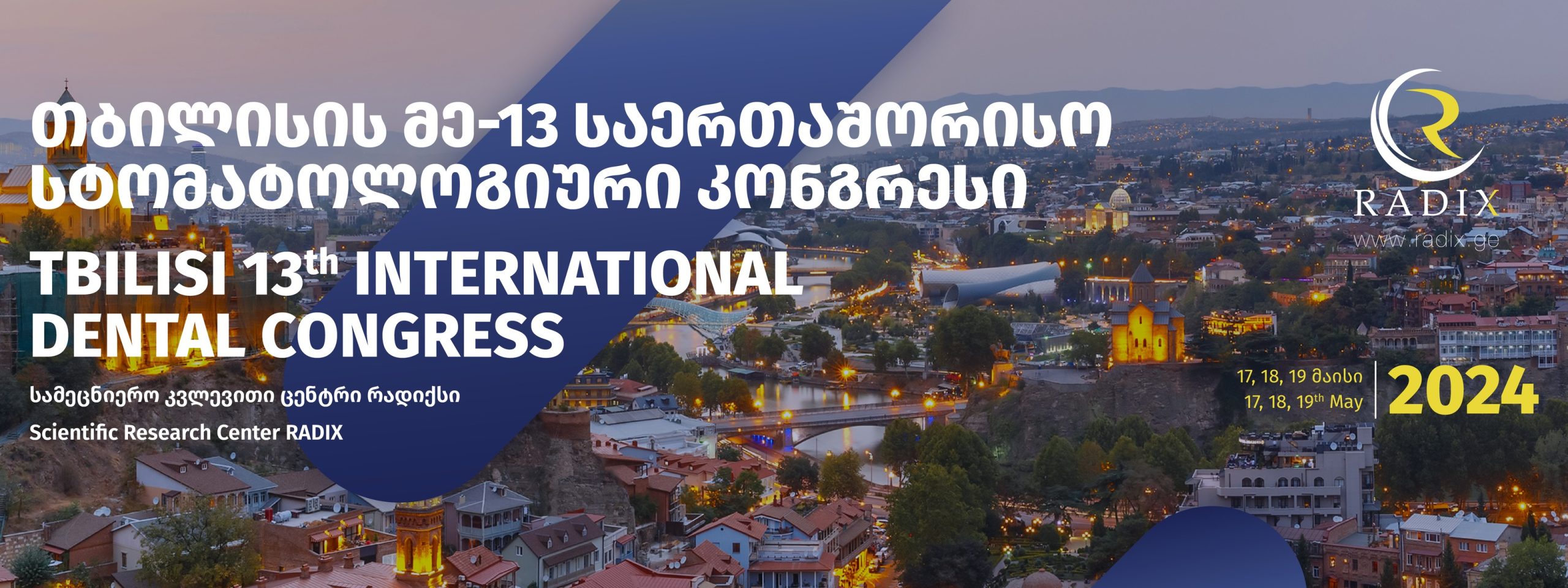 2024 წლის 17-18 მაისს, სამეცნიერო-კვლევით ცენტრ “რადიქსის” ორგანიზებით, თბილისის მე-13 საერთაშორისო სტომატოლოგიურ კონგრესი გაიმართება. კონგრესს სასტუმრო “პულმანი” უმასპინძლებს.